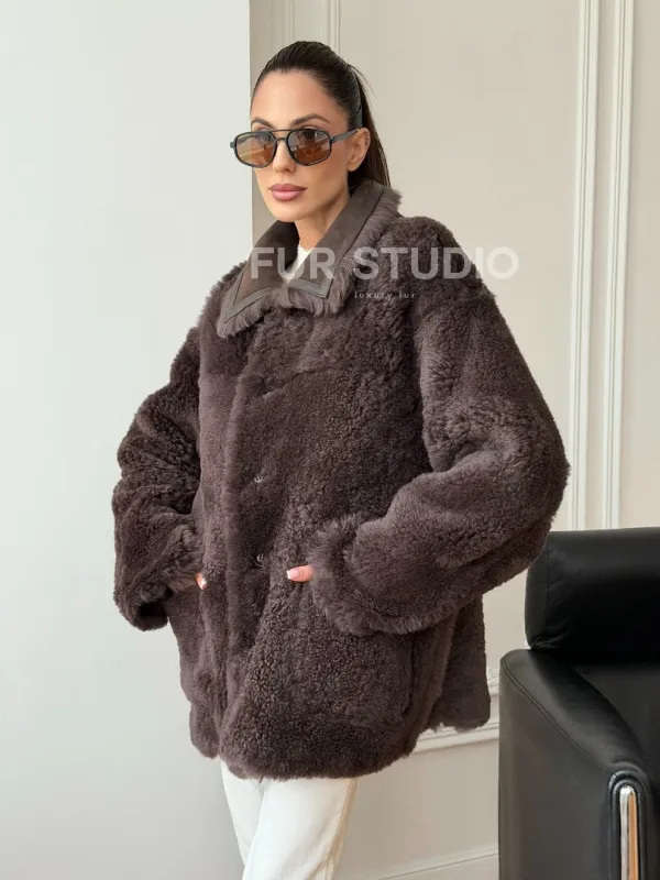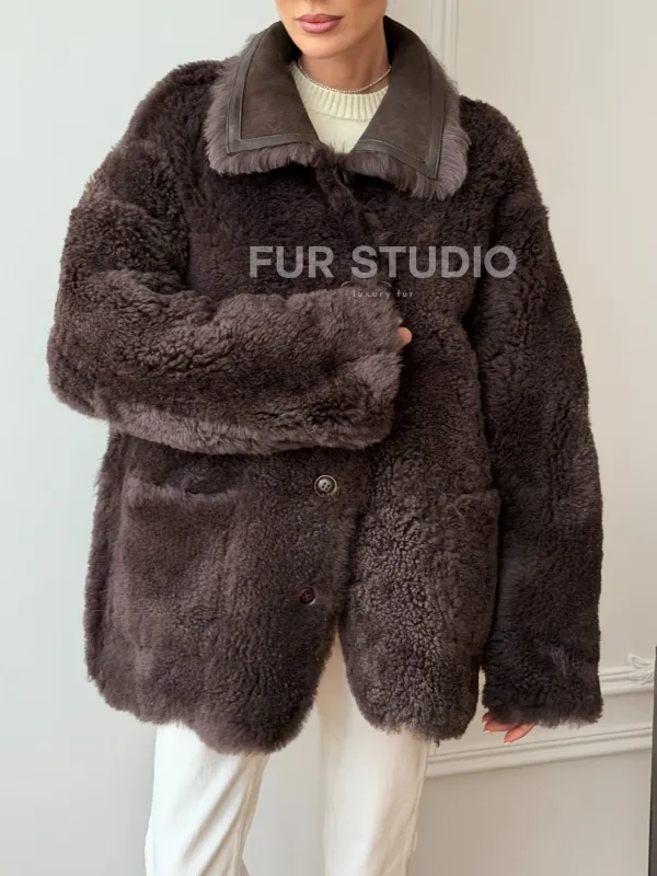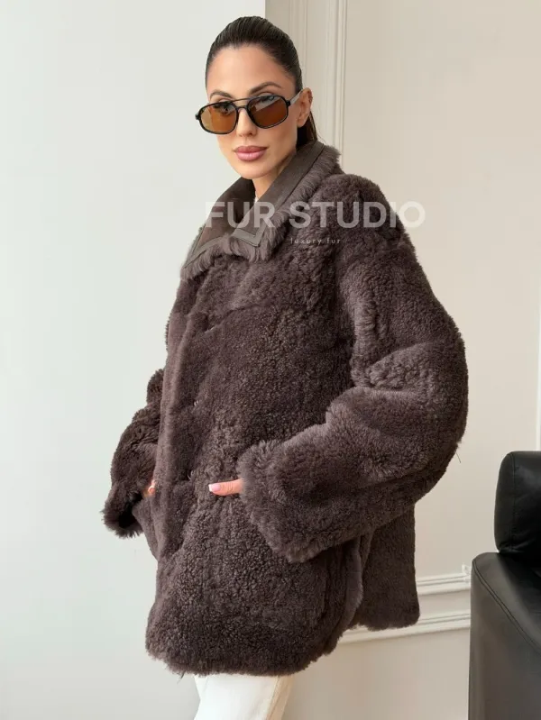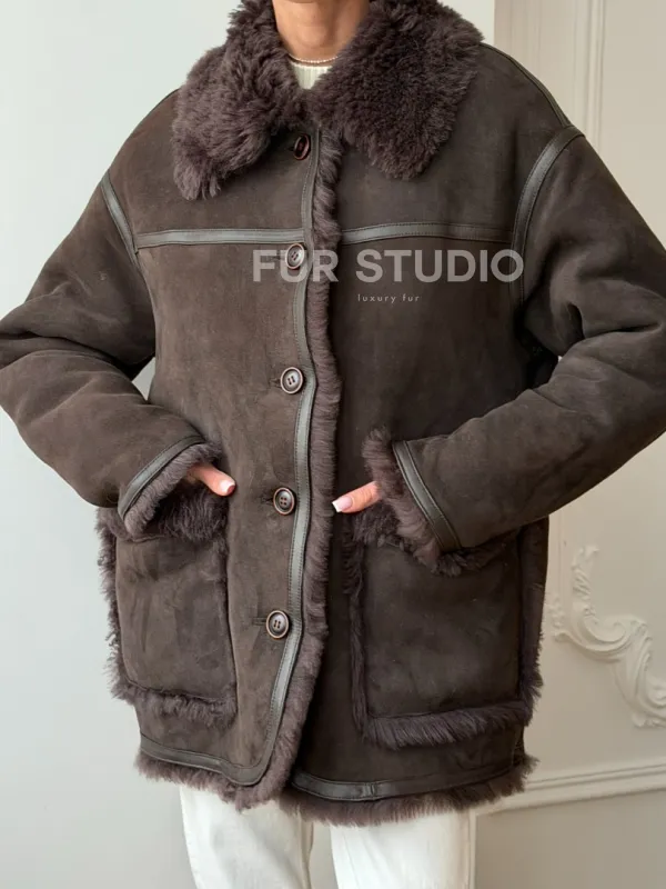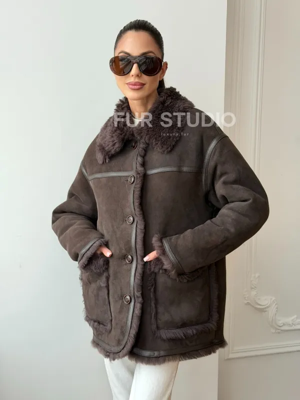 Двухсторонняя дубленка - мех тиградо 102734